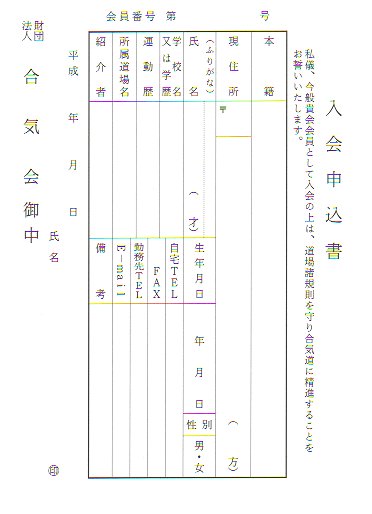 下記「入会申込書」をFaxにてお送り下さい。又は、道場に直接お持ち下さい。